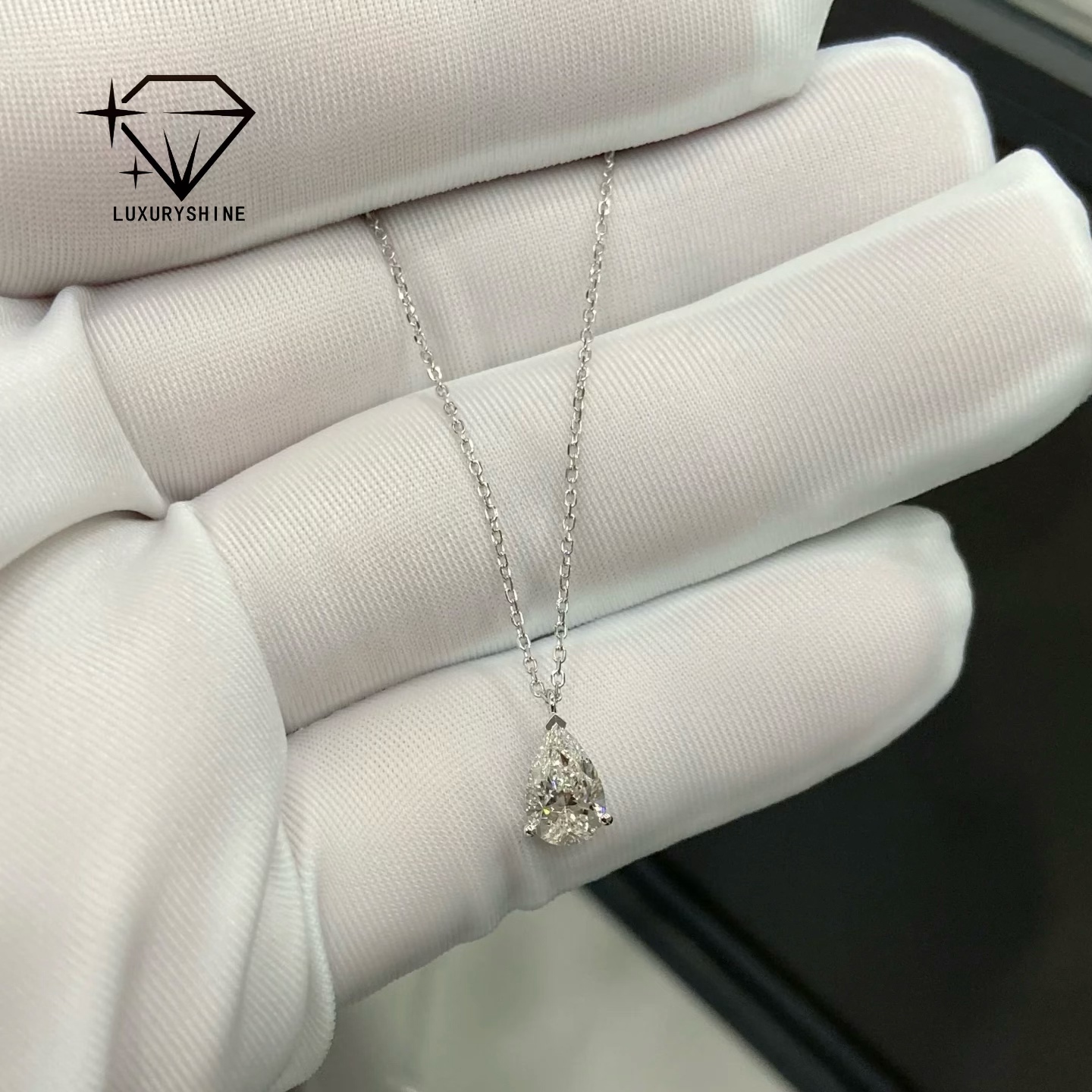 El collar de joyas de lujo de diamantes cuenta con un colgante de diamantes impresionante que muestra una exquisita artesanía y un diseño impecable.proporcionando una variedad de formas para adaptarse a las diferentes preferenciasLa claridad del diamante está clasificada como VS2, lo que garantiza una piedra preciosa de alta calidad que brilla brillantemente a la luz.